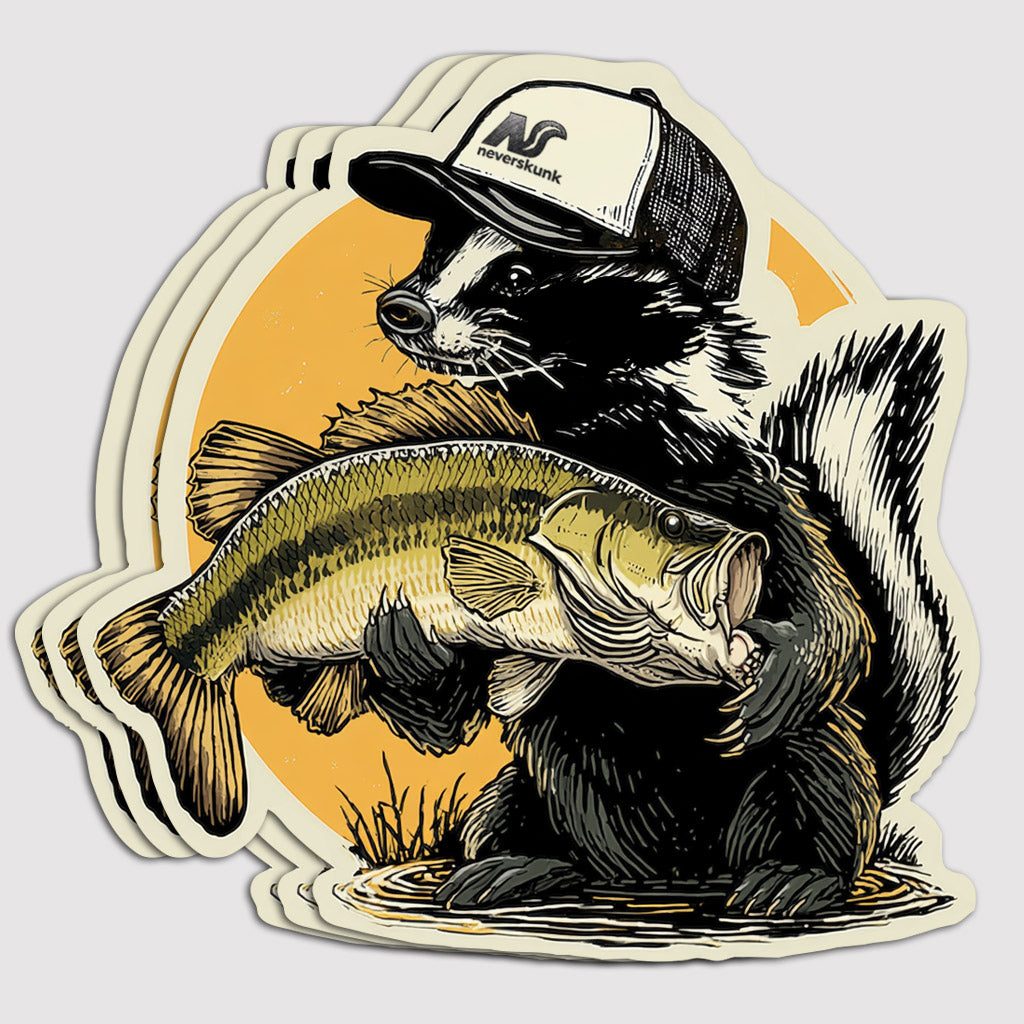 "STANKY" THE SKUNK WITH LARGEMOUTH BASS DIE CUT STICKER